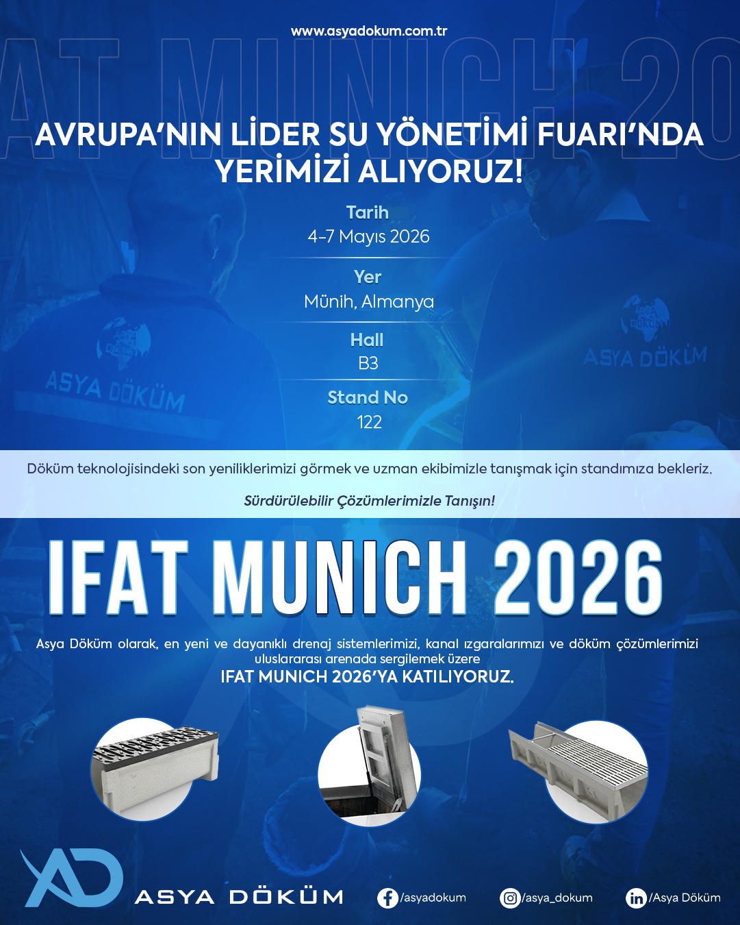 Kanal Izgarası, Sfero Döküm, Polimer Kanal, Müdahale Kapağı, Paslanmaz Kapak, Fuga Izgara, Yağmur Suyu Izgarası, Sügeçler, Polimer Beton Drenaj Kanalı, Buşakle Gibi Birçok Ürün İmalatı.